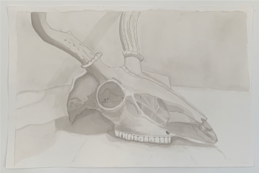 Skull Study, 2019 13” X 20” Inkwashon Paper Drawing II