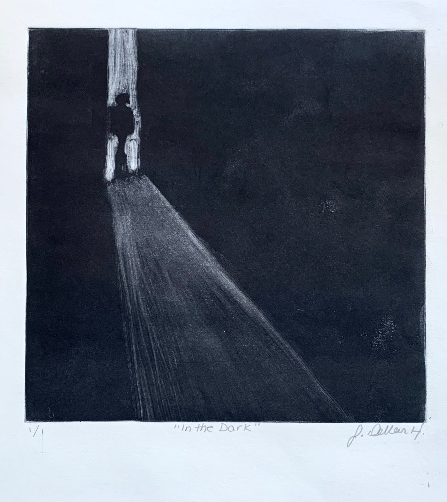 In the Dark, 2019 8″ x 8″ Aquawash monoprint on paper Printmaking