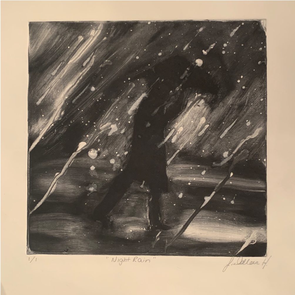 Night Rain, 2019 8” x 8” Aquawash monoprint on paper Printmaking