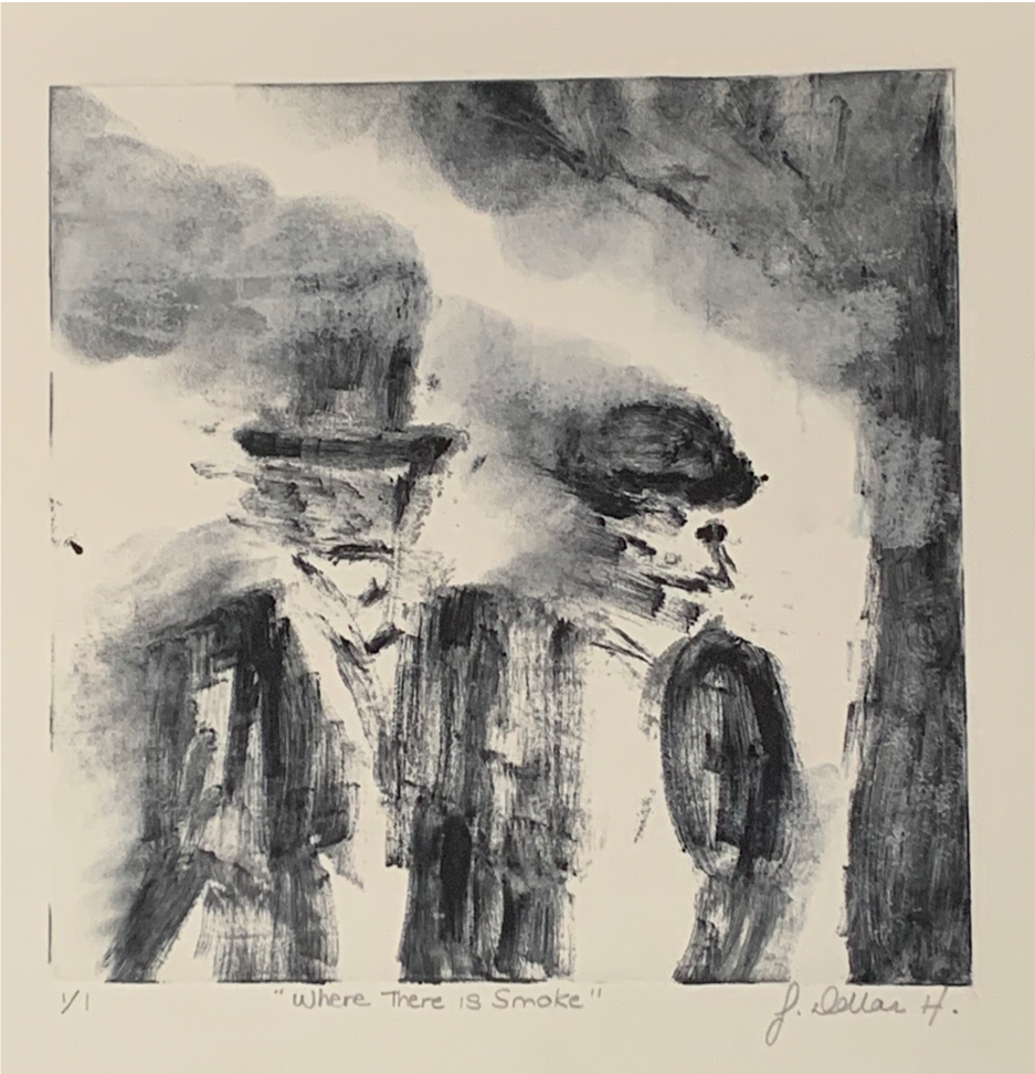 Where there is Smoke, 2019 13” x 11” Aquawash monoprint Printmaking